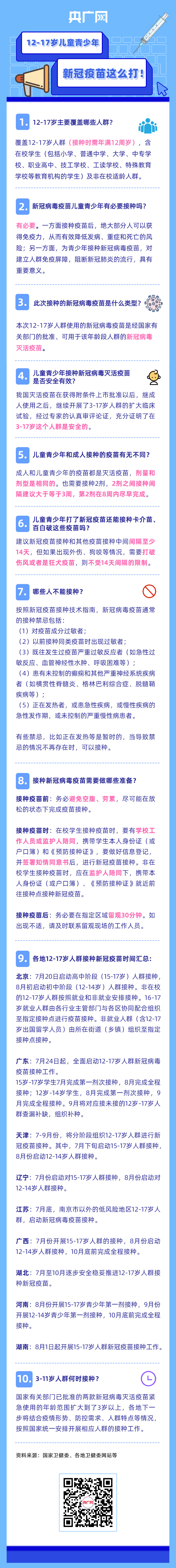 12-17岁儿童青少年新冠疫苗这么接种 一图get!